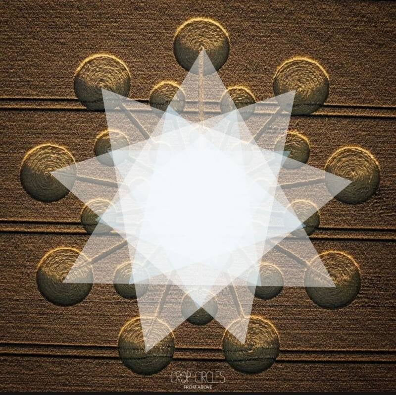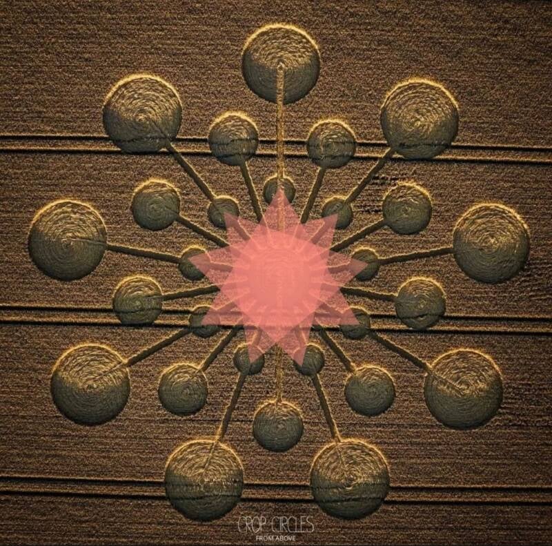 Este símbolo de la cosecha, aparecido el 25 de julio de 2023 (tercer portal 777), día fuera del tiempo de los mayas, el cero, presenta mucha simbología. Aquí explicaremos alguna vinculada con la geometría sagrada y la numerología, que, al fin y al cabo, están vinculadas desde el origen, formando parte de la Filosofía matemática.